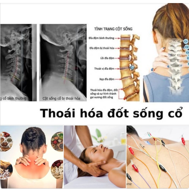 vTHOÁI HÓA CỘT SỐNG CỔ THEO Y HỌC CỔ TRUYỀN Biểu hiện bệnh lý của thoái hóa khớp nói chung và thoái hóa cột sống nói riêng là đau cố định tại khớp, tăng khi vận động, khi thay đổi thời tiết, tê, mỏi, nặng vùng cơ thể tương ứng. Theo YHCT, tùy vào vị trí khớp bị thoái hóa, các triệu chứng mà thoái hóa cột sống được mô tả trong bệnh danh lạc chẩm, kiêm bối thống (vùng cổ vai gáy), THCS thuộc phạm vi Chứng Tý. Tý đồng âm với Bí, tức là bế tắc lại không thông. Chứng tý là do tà khí phong hàn thấp nhiệt ở ngoài xâm nhập vào cơ thể, đóng bít ngăn trở kinh lạc, khí huyết vận hành không thông lợi mà gây ra đau. - Nguyên nhân gây chứng tý rất đa dạng bao gồm: + Ngoại nhân: Do phong, hàn, thấp, nhiệt thừa lúc tấu lý sơ hở xâm nhập vào cân, cơ, khớp, xương, kinh lạc,… làm bế tắc kinh mạch, khí huyết không lưu thông gây đau. + Nội thương: Rối loạn tình chí, hoặc tiên thiên bất túc, hoặc do mắc bệnh lâu ngày, tuổi cao can thận hư yếu, sau kinh nguyệt, sinh đẻ làm khí huyết suy kém, âm dương không điều hòa. + Bất nội ngoại nhân: Do lao động vất vả, ăn uống, tình dục không điều độ, đàm ẩm hoặc do bị chấn thương làm huyết ứ khí trệ, gây bế tắc kinh lạc vùng cổ gáy, lưng gây đau, hạn chế vận động.