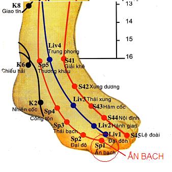 - Lấy ở góc trong gốc móng chân ngón cái độ 0,2 tấc, trên đường tiếp giáp da gan chân với da mu chân, của bờ trong ngón chân cái.