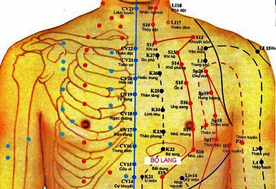 Chú ý: Không châm sâu và không kích thích mạnh, vì có thể làm tổn thương phổi hay tim.