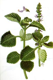 | MÔ TẢ: | Cây cỏ, sống lâu năm, cao 20-50cm. Phần thân sát gốc hoá gỗ. Lá mọc đối, dày cứng, giòn, mọng nước, mép khía răng tròn. Hai mặt lá màu xanh lục nhạt. Hoa nhỏ, màu tím đỏ, mọc thành bông ở đầu cành. Quả nhỏ, tròn, màu nâu. Toàn cây có lông rất nhỏ và thơm như mùi chanh. |