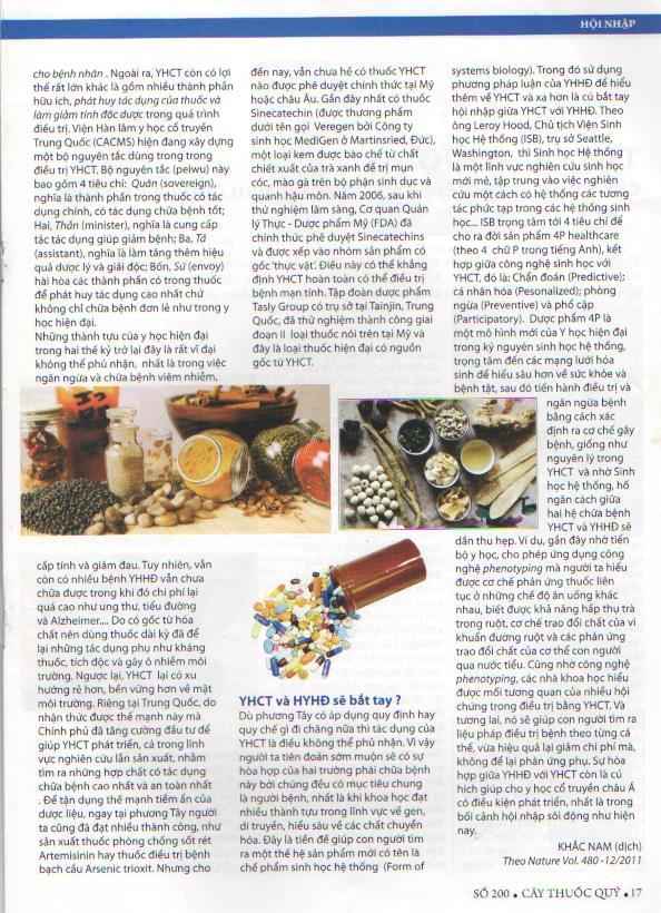 Sự hòa hợp giữa YHHĐ với YHCT còn là cú hích giúp cho YHCT Châu Á có điều kiện phát triển, nhất là trong bối cảnh hội nhập sôi động như hiện nay.